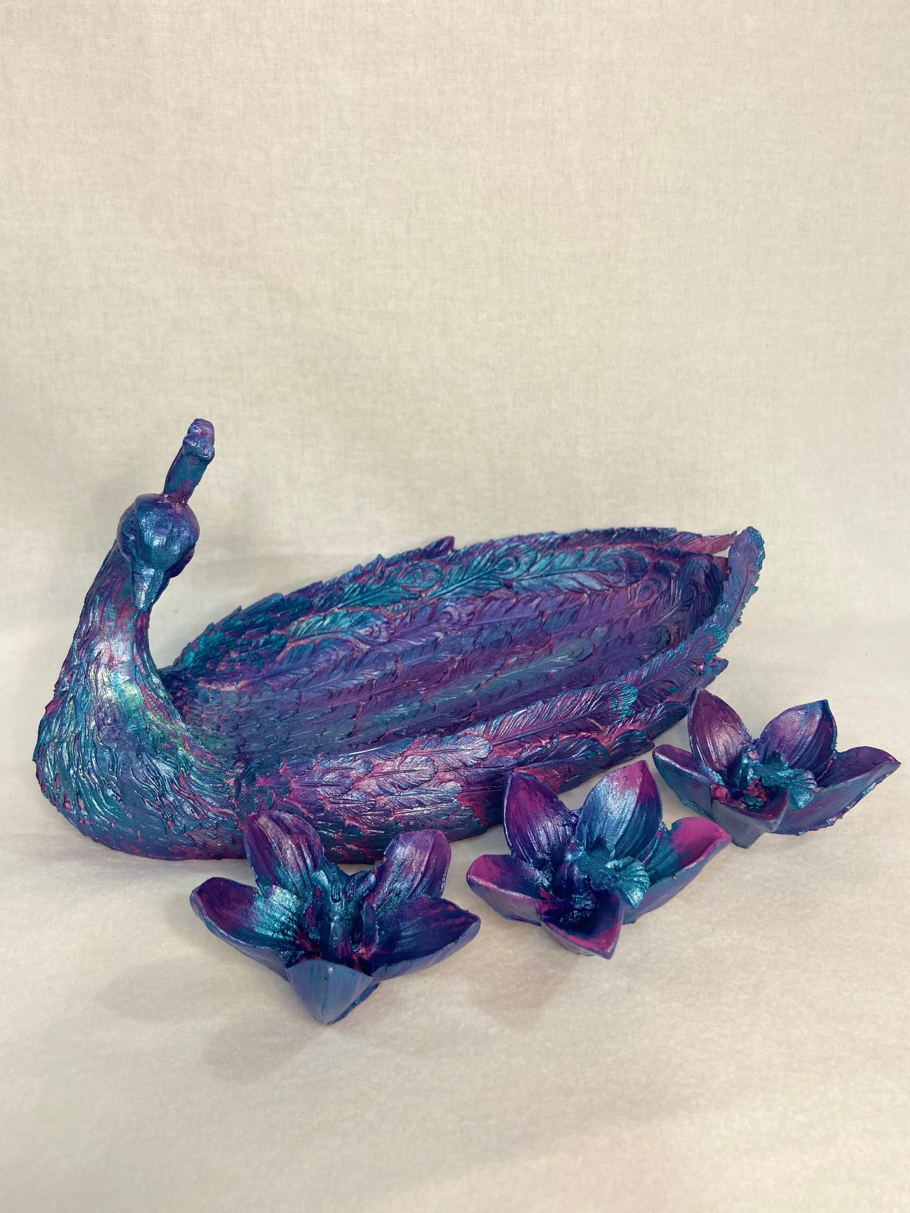 Tavus Kuşu Figürlü Obje, evinizin dekorasyonunu tamamlamak için zarif bir seçenektir. Bu ürün, figüratif bir tavus kuşunun zarif tasarımı ile tasarlanmıştır ve herhangi bir yaşam alanına sofistike bir hava katacaktır.